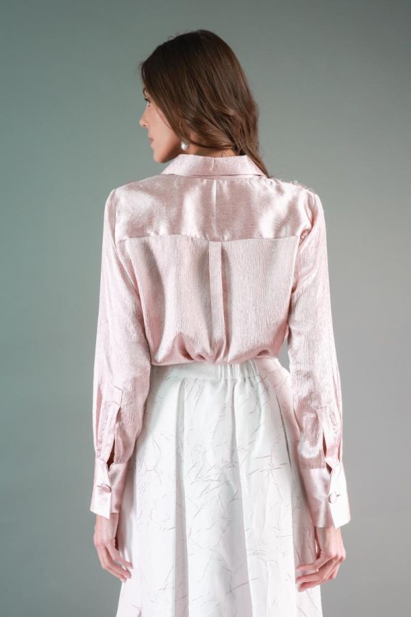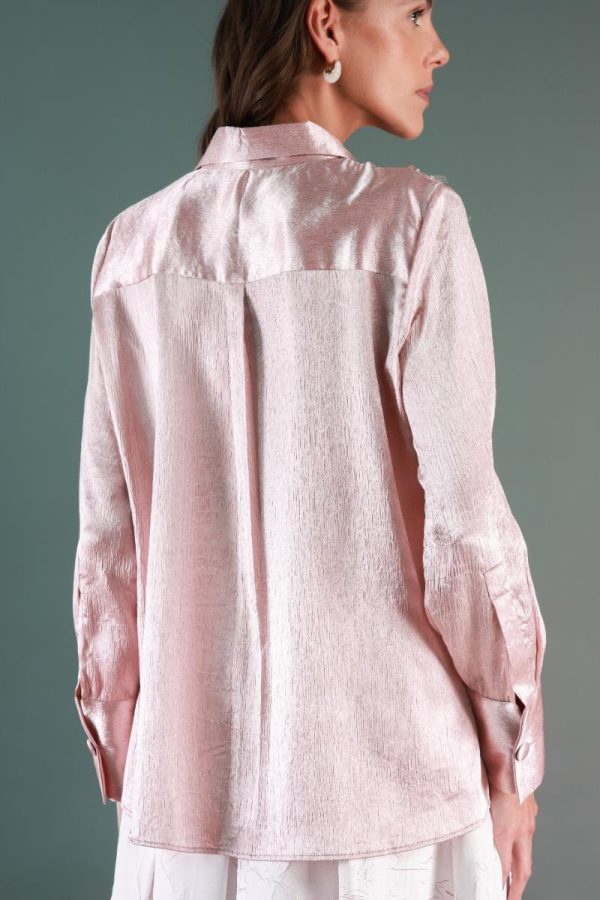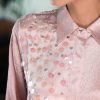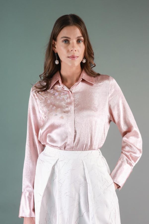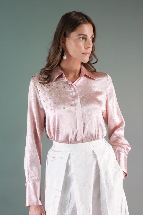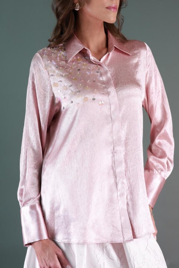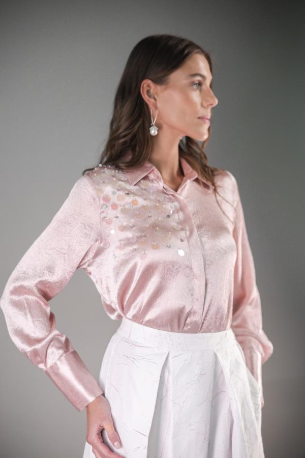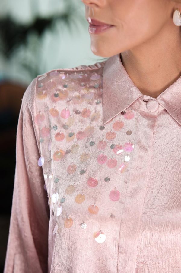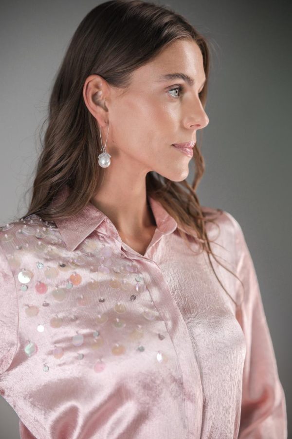 Button-down shirt with wide sequence detailing.