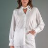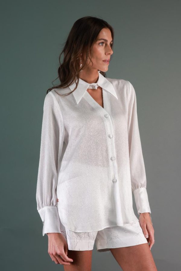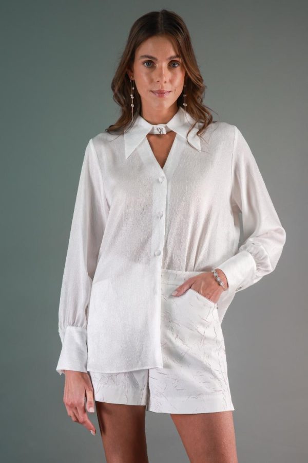 Button-Down shirt with a choker collar detailing.