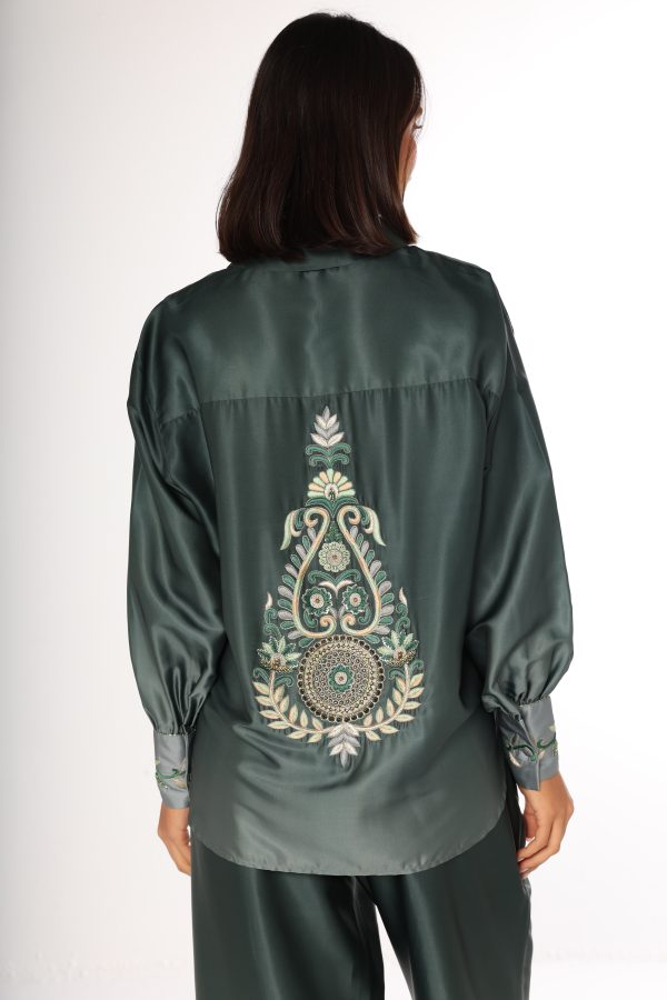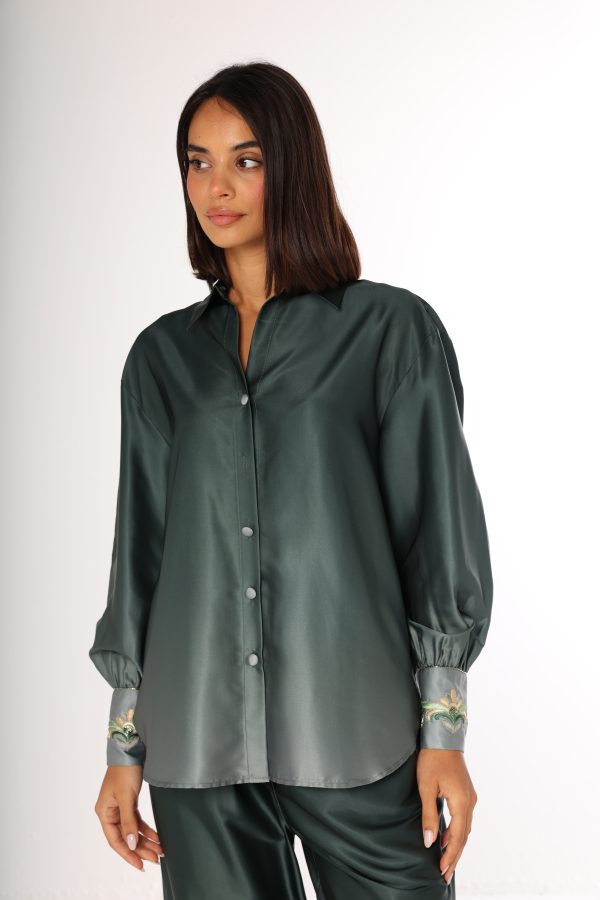 Hand embroidered Silk Shirt with cuffed sleeves.