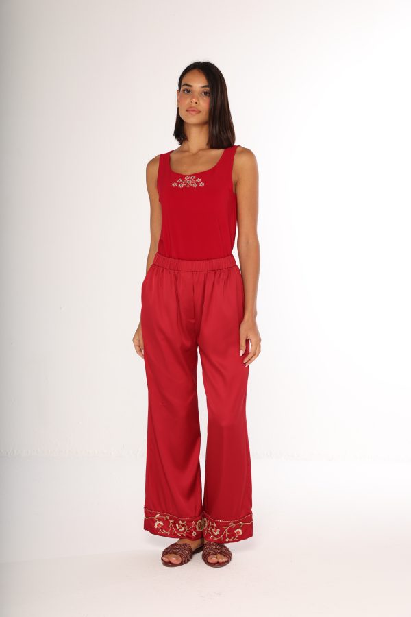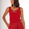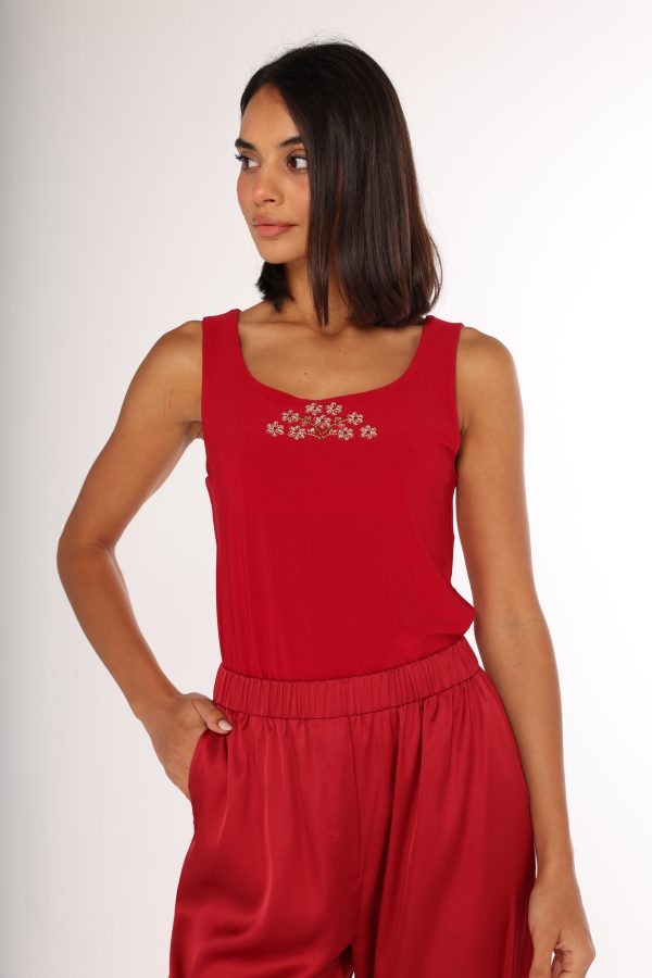 Sleeveless Stretch Top with hand embroidery.